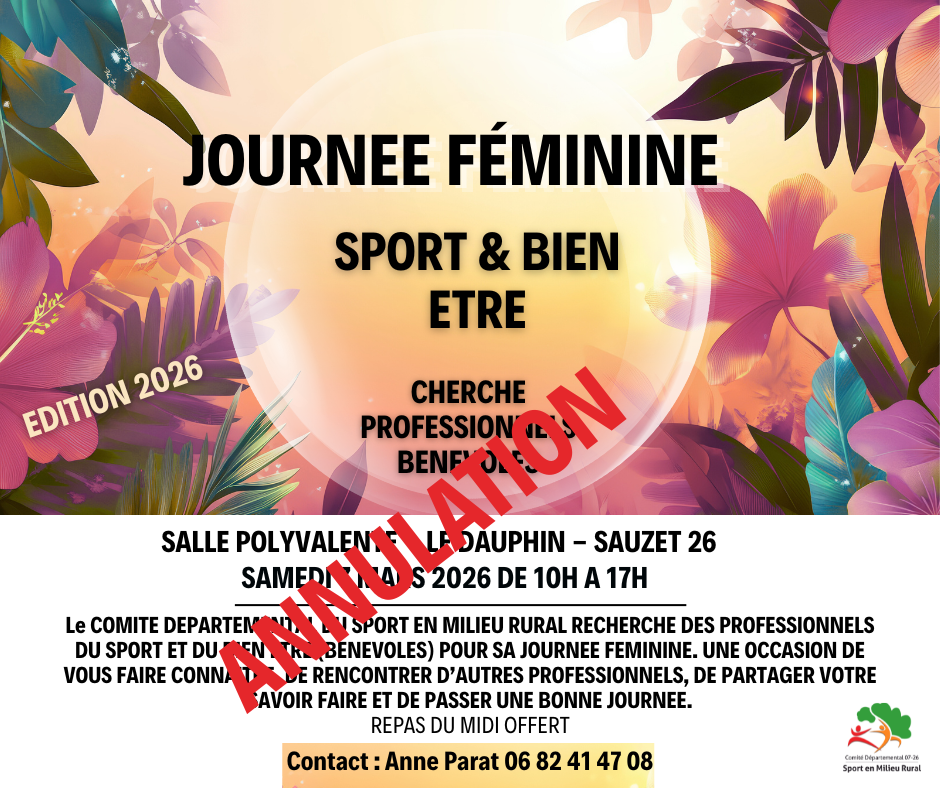 Le CDSMR 07/26 recherche des professionnels bénévoles du sport et bien être pour sa journée féminine du 7 Mars dans le Drôme!! L’occasion de vous faire connaître auprès de nouvelles personnes, de partager votre savoir faire avec d’autres professionnels.